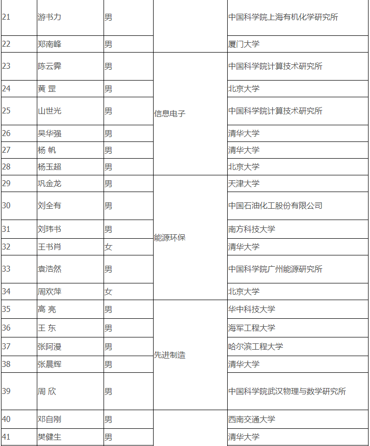 根據名單我們可發現,此次獲獎者絕大多數來自17所高校,如北京大學、清華大學、上海交通大學、浙江大學、中科大、南京大學、武漢大學、華中科技大學、東南大學、廈門大學、西南交通大學等;9名獲獎者來自相關研究所,還有一名來自中國石油化工股份有限公司。