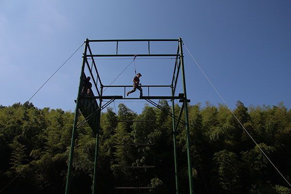 高空斷橋”。隊員將爬上一個8米高的斷橋,從一端跳到另一端并返回。