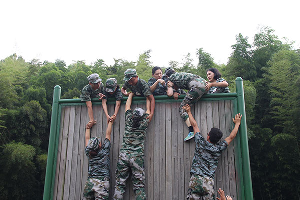 畢業墻”。所有隊員在團隊協作攀登4.27米的高墻。